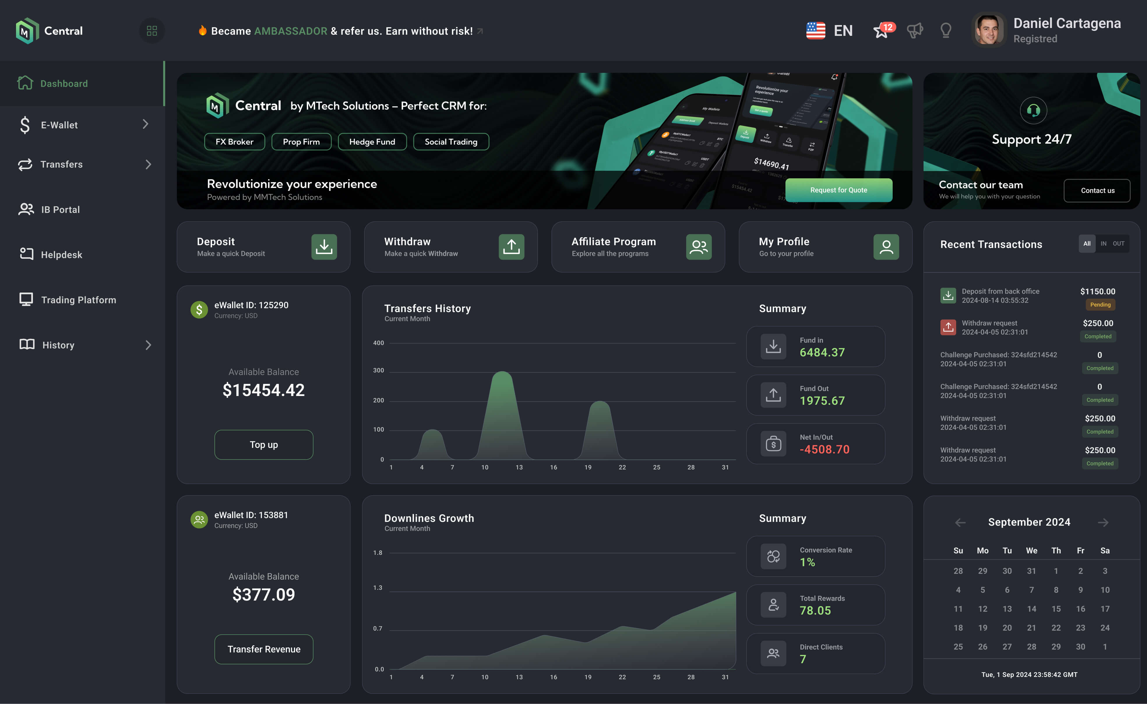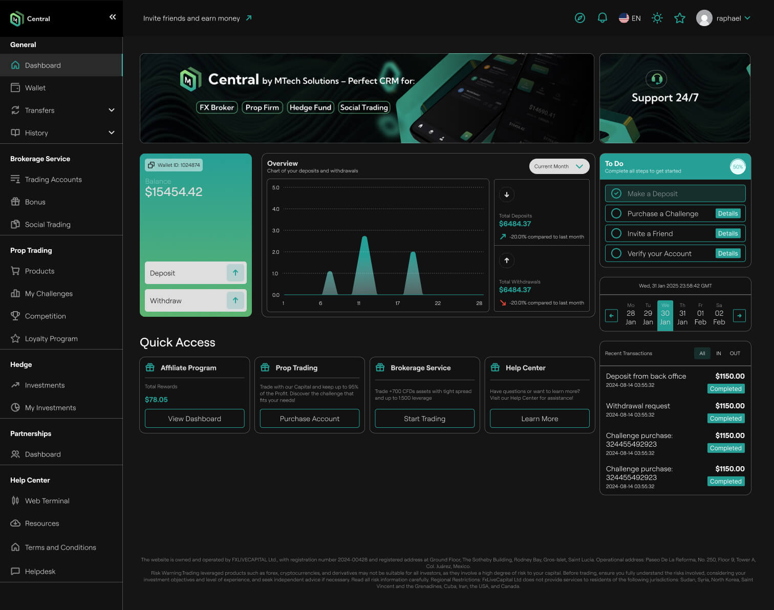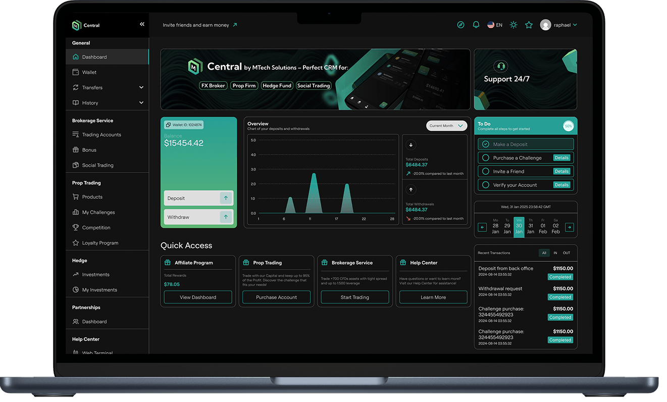 MMTech's Central CRM is a trading platform serving FX brokers, prop firms, hedge funds, and social traders. When I joined, the dashboard was technically functional but practically overwhelming. Users landed on a page competing with too many elements at once, with no clear sense of what to do first or where their most important information lived. Key actions were buried, data had no context, and the navigation offered no logical structure for the range of services the platform offered.